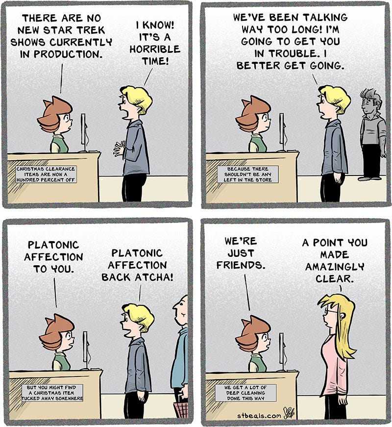 My friend Jim pointed out that Star Trek had no new shows in production and thought Tabby must be devastated. I raced to address that.