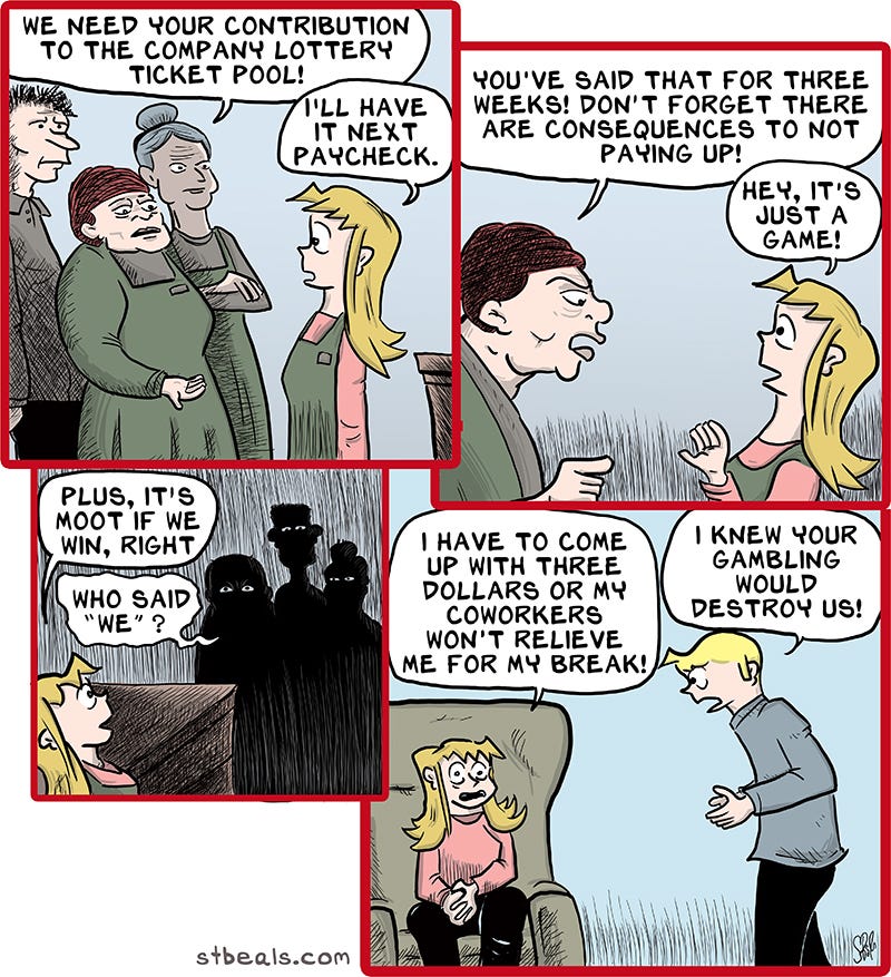 This one was more bizarre than popular, but I include it because that was what I was going through. I worked a job where the pressure to participate in a group lottery ticket was pretty darn strong.