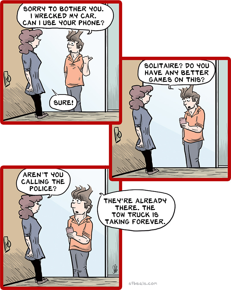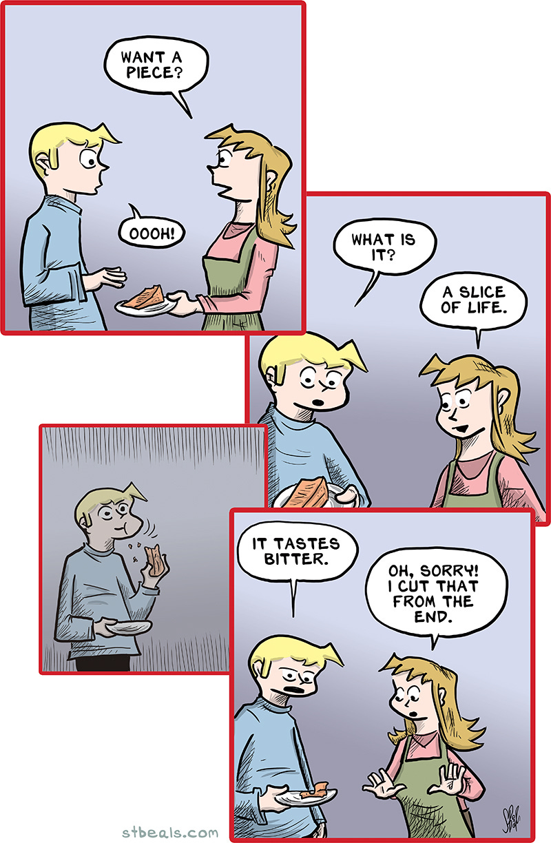 I've always read that the best comics start with the characters and then the characters drive the strip. Sounds like that's exactly what you've done. In any event, you've end up with a great strip! When are you going to publish a collection?
