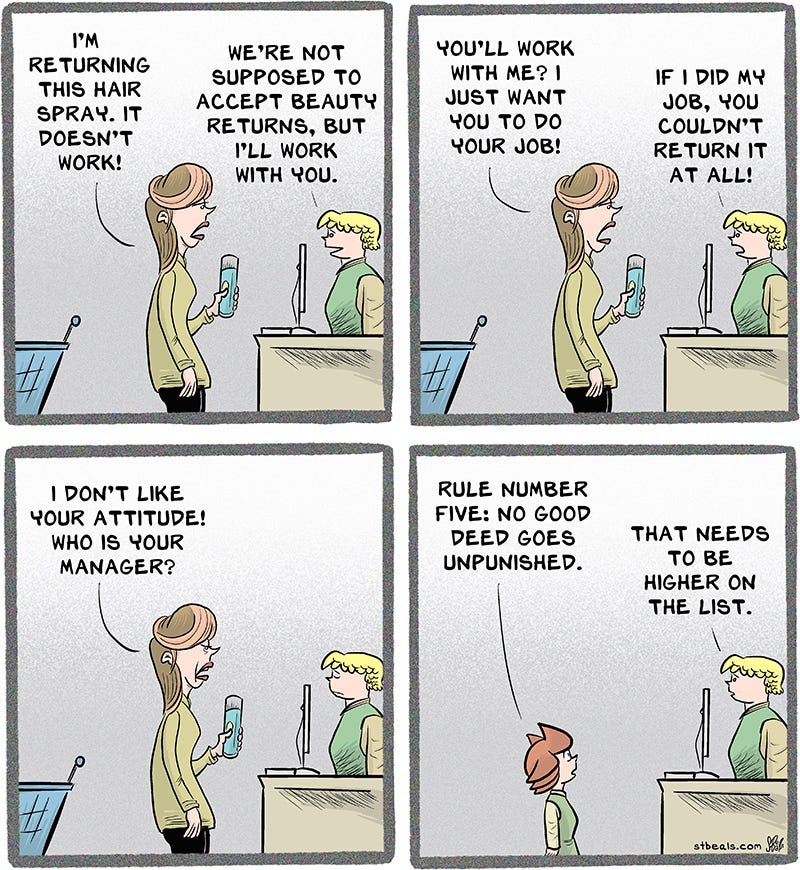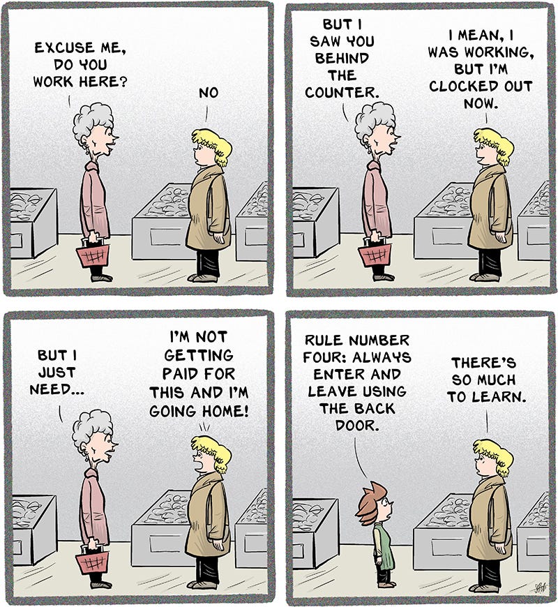 Ah, this is a big one. This is a rule you quote after something has happened. You try to help someone and it blows up in your face, usually with the customer angry. Had you done nothing, all would be well.