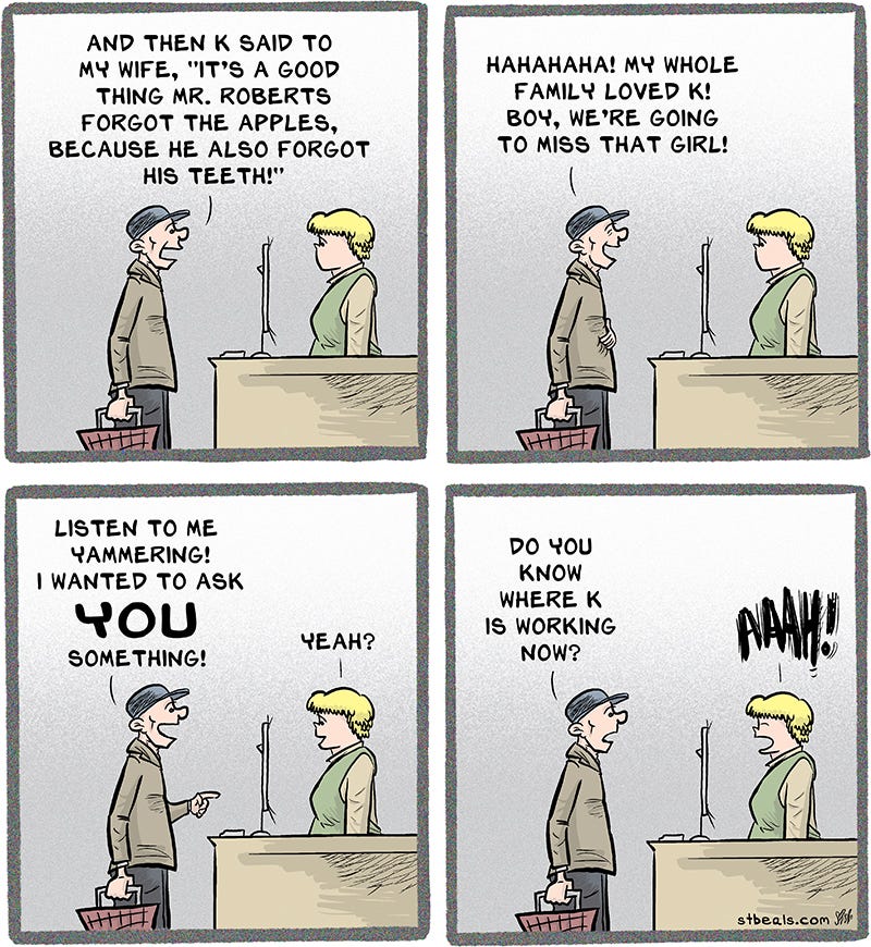 It is often used to get out of an endless conversation with a customer who never stops talking. The customer is usually a very nice person who simply has diarrhea of the mouth. By the time a fellow staff member gets you away from them, you’re listening to some off topic story about their great-aunt’s gall stone collection. If you’re lucky. Endless conversationalists pride themselves on being explicit.