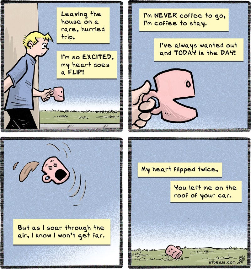 Several years ago, I started writing about a coffee cup. It’s really inevitable for a coffee cup to become a loud, hyper character.