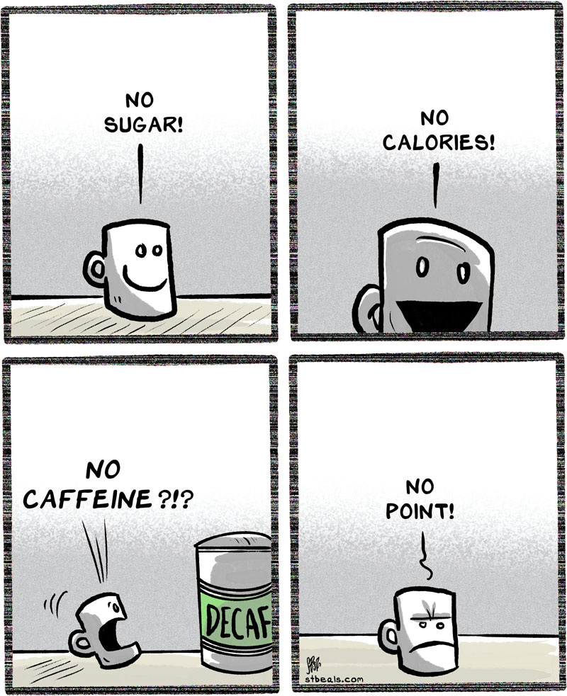 I know it’s heresy, but there’s more to coffee than caffeine. There’s something about a hot drink that warms your body and clears the head. It could even be (I’m sorry to curse) decaffeinated, yet still provide a level of comfort that you really can’t get outside of general anesthesia.
