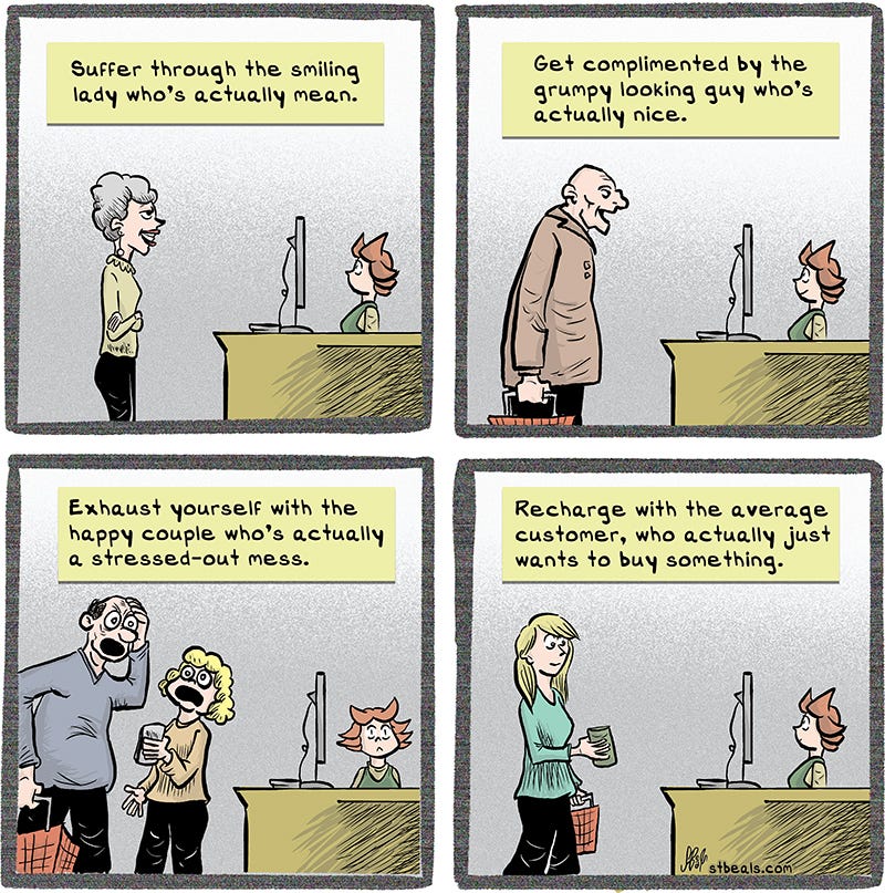 There is something kind of sad about the customer who wants a staff member to join them on their emotional journey. I’m here so that I can go home. I’m not a stockholder. I have no five year plan for the company. I’m not preparing to address board members. My emotional stake at the day-to-day operation of this place begins and ends with my paycheck.