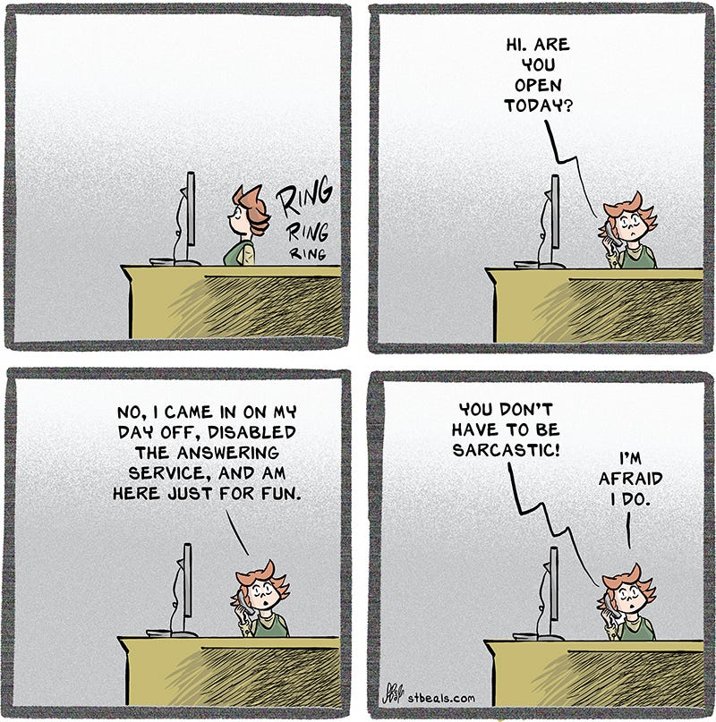 I’ve had this everywhere I’ve worked, including the comic strip world. I have a current reader who has announced, at least twice, that he wasn’t reading the strip any more. True, he didn’t say he was going to stop commenting on my comic, because he still is, but I’m wondering how he’s so accurate with his comments if he’s stopped reading it. People are amazing.