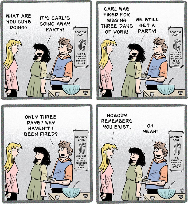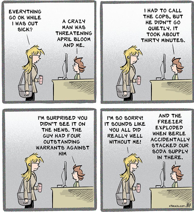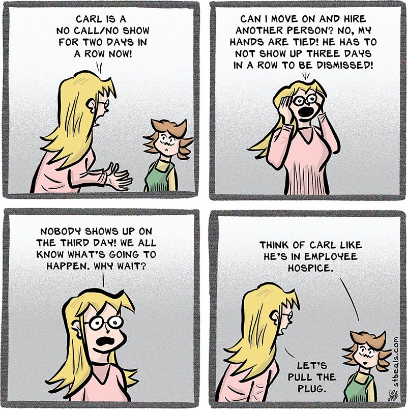 The same downtown library that had the basketball kid being chased by every cop in the world also had a policy of firing staff members who did not call or show up for six consecutive days. I always wondered if anyone ever showed up on that sixth day and kept their job. It would be extremely awkward, but rules are rules.