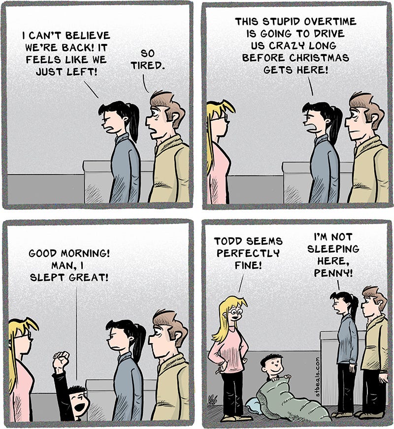 Yes, I’ve been dealing with some mandatory overtime. It’s made me merrily absurd.
