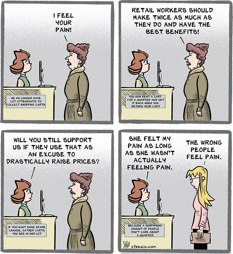 One thing’s for sure, if employees are going to make more money then somebody’s going to have less of it. A store is going to make sure it isn’t them. Prices started going up the second store employees started making several dollars more an hour. There was a brief window when employees could do things like pay rent and still have some money left over to save or spend on other things. Then rent went up several hundred dollars and now everyone is broke again.