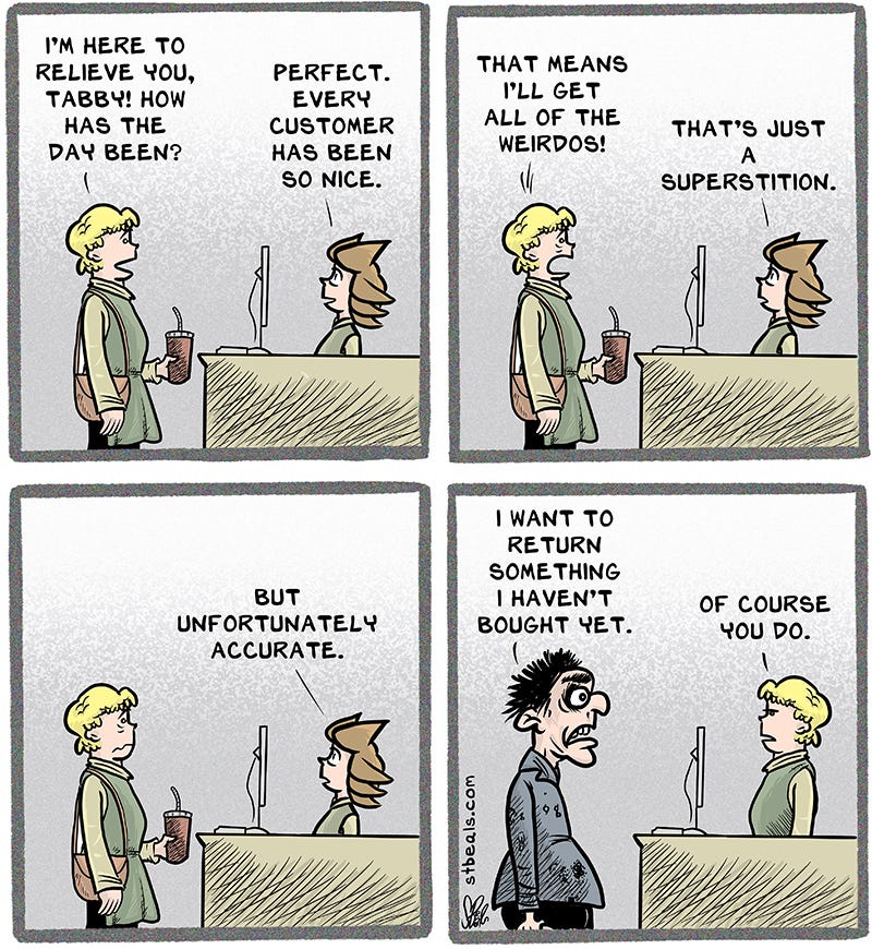 This comic is very true. If the person before you encountered nothing unusual, that means you’ll get the wackos.