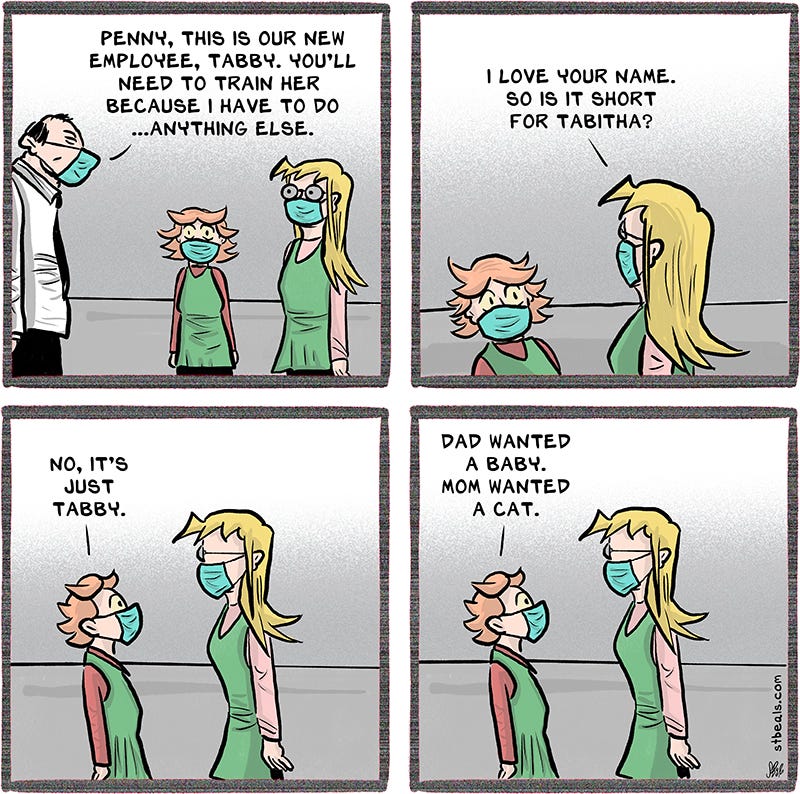 All of that it to say that Tabby reminded me of Spock in the very first strip. She was based on real people, but Spock was there.