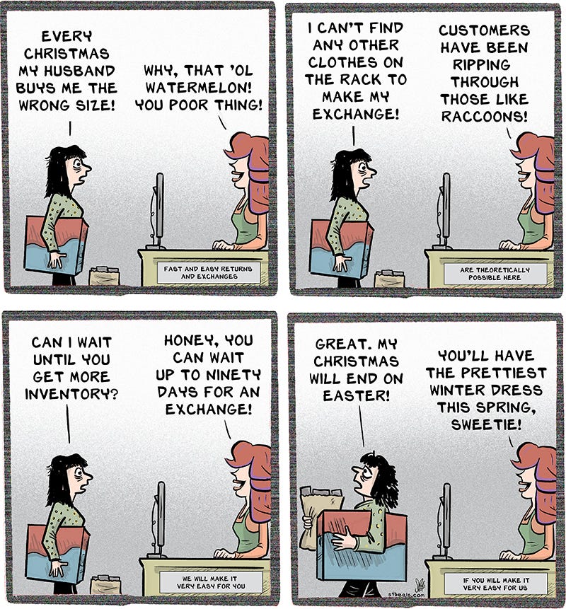 I knew managers who made this mistake. They had four times the inventory that they were supposed to have because they didn’t properly count. I inherited a store that had enough posterboards to hand out to every classroom in the state. They were only supposed to have twenty-eight. Since they didn’t technically exist, I did not technically give them away.