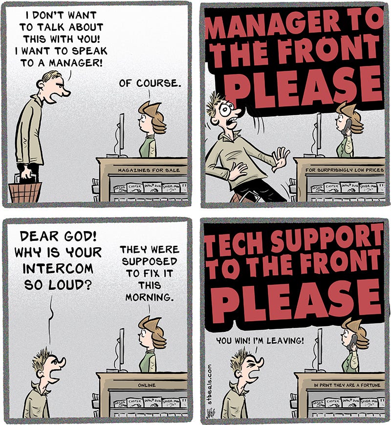 Walking through a line of not-so-happy people to become the one who is helping them is not a very enjoyable walk, but it helps if you try whistling a fun tune as you go.