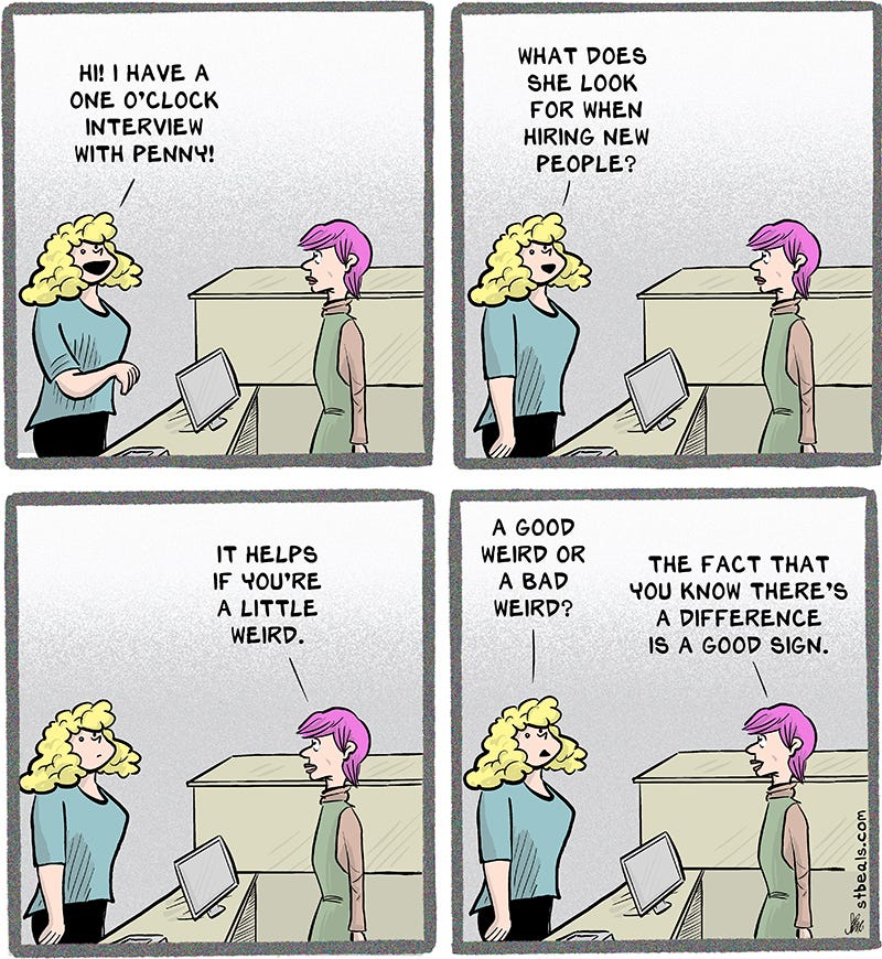 I’ve made the distinction between “good weird” and “bad weird” for years. I try my best to be “good weird”.