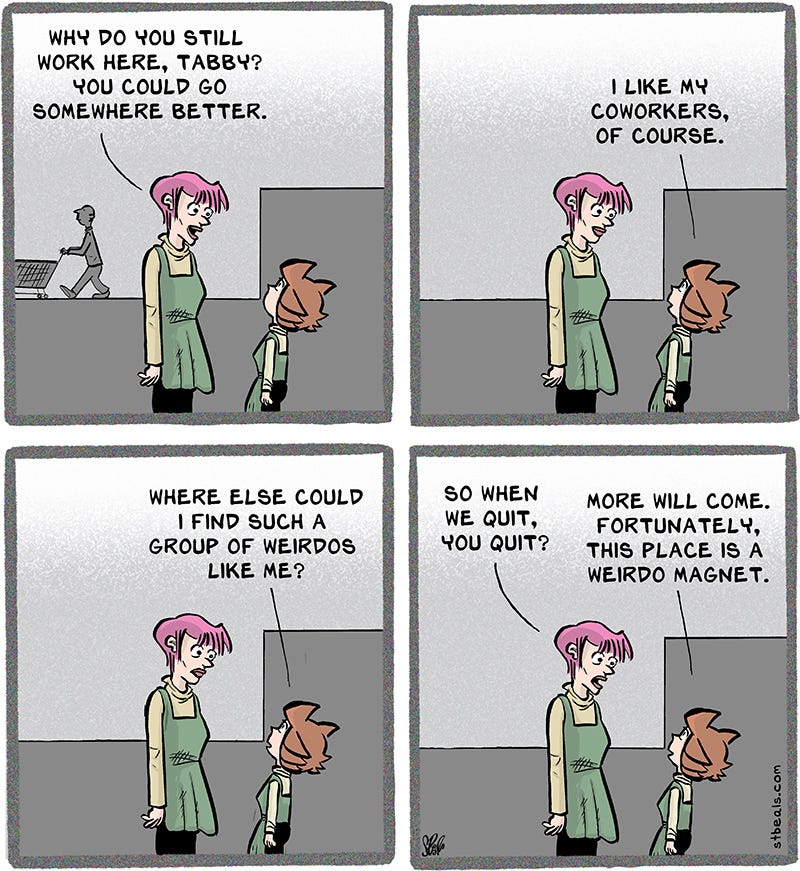 I stand by this. Some jobs just attract the best people. Call them weird if you wish.
