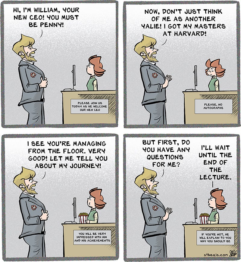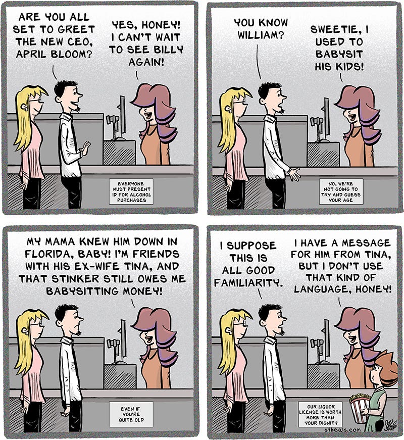 There’s always somebody who has a personal relationship with a higher up. It may or may not help their career path, but in this CEO’s case I’d be nervous around April Bloom.
