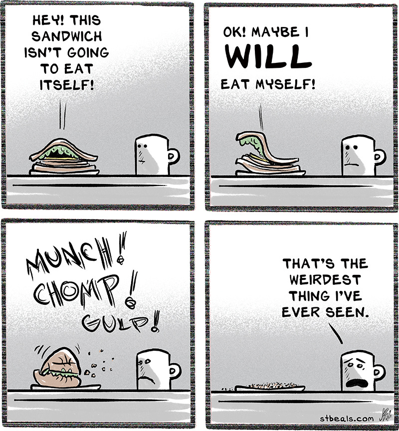 The best thing about comics is that they aren’t the real world and you can inhabit their reality for awhile to escape ours. The real world is supposed to be a little more boring and predictable, whereas in comics we have things like talking dogs. I’m specifically talking about the comic strips you see online, in newspapers, and in books.