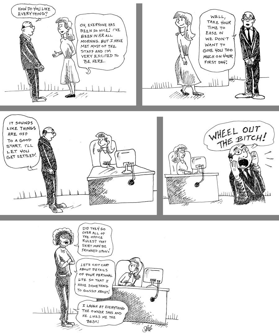 Ok, this was said to me by a coworker. She said that no matter what job she had, it all seemed very good at first until they wheeled out the bitch. I could not let that one go undocumented.