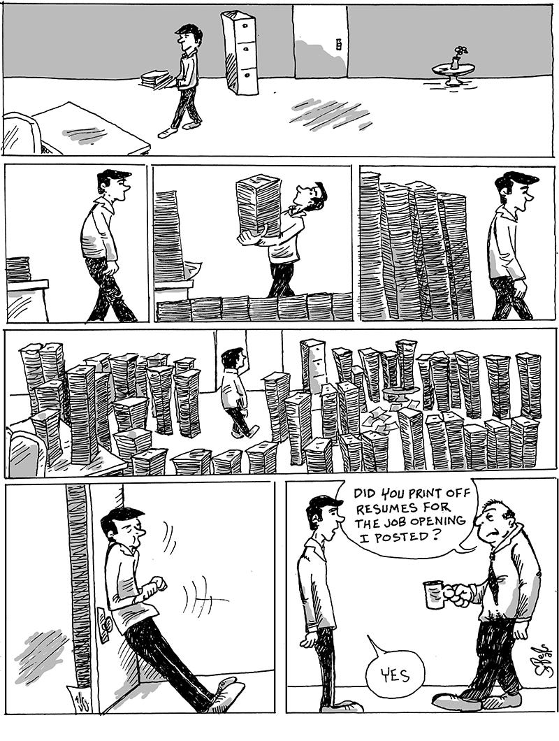 And if there was a job posted, the flood of resumes was very sad. At least I though it was sad. Nobody else seemed to think it was.
