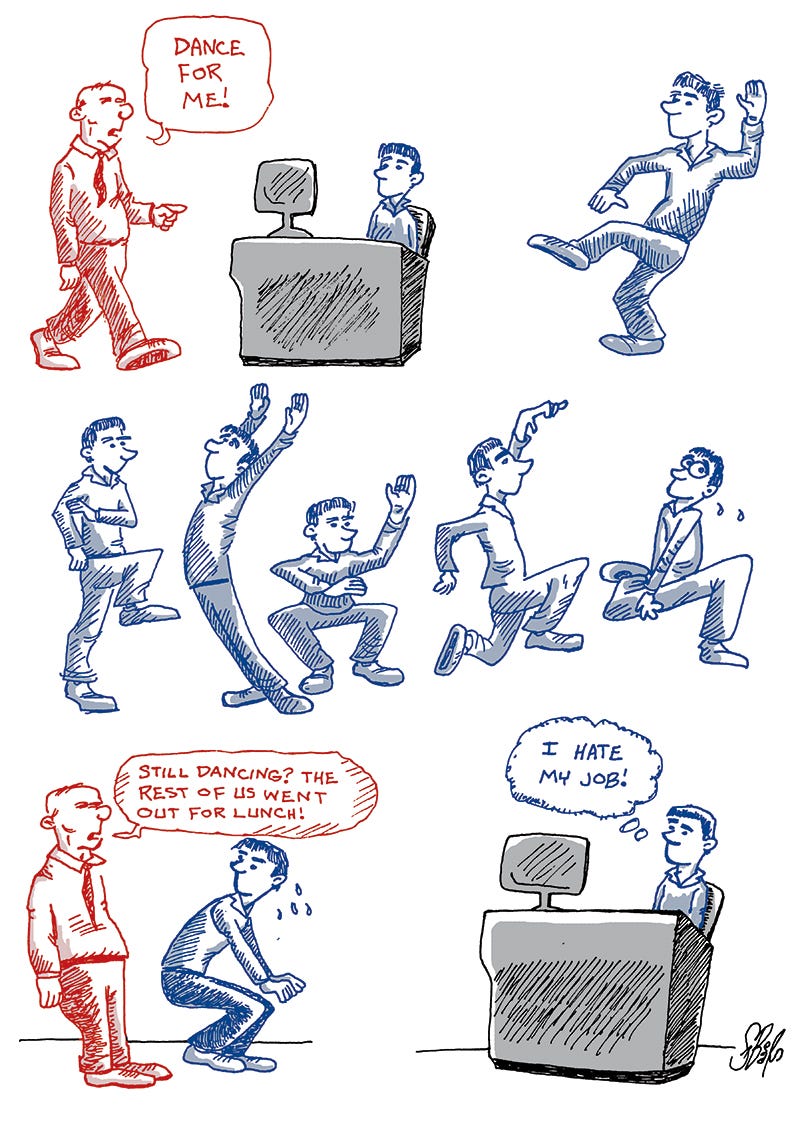The first one with the boss character. A friend liked this so much, he printed it out to hang at his job. The circle was complete.